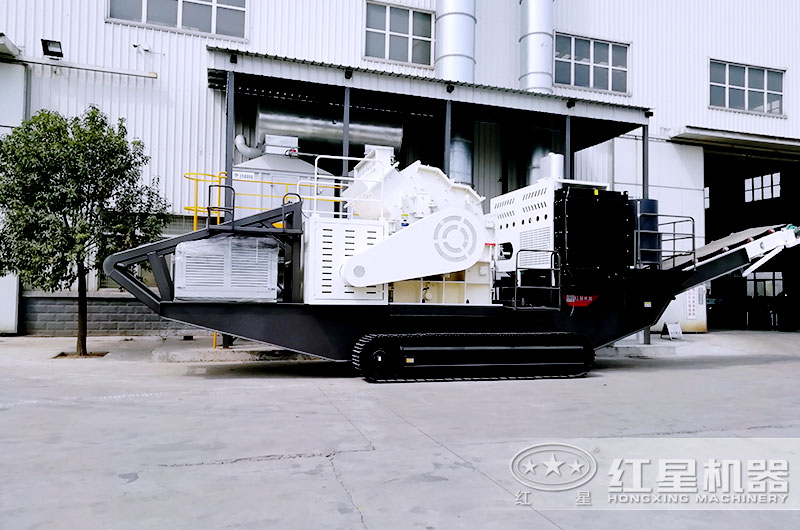 移動(dòng)履帶碎石機(jī)已經(jīng)開(kāi)到破碎現(xiàn)場(chǎng)