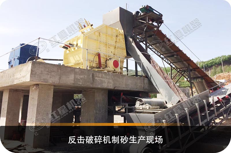 反擊破碎機生產(chǎn)石灰石機制砂現(xiàn)場