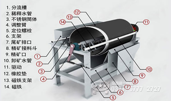 鉀長石除鐵磁選機通過將原礦中的鐵、云母等物質(zhì)選出,得到純度更加高的鉀長石,使其經(jīng)濟應(yīng)用領(lǐng)域和經(jīng)濟價值都得到了提升。該設(shè)備工作效率高、處理能力強、磁選效果好,以下詳細介紹鉀長石除鐵磁選機工作原理。